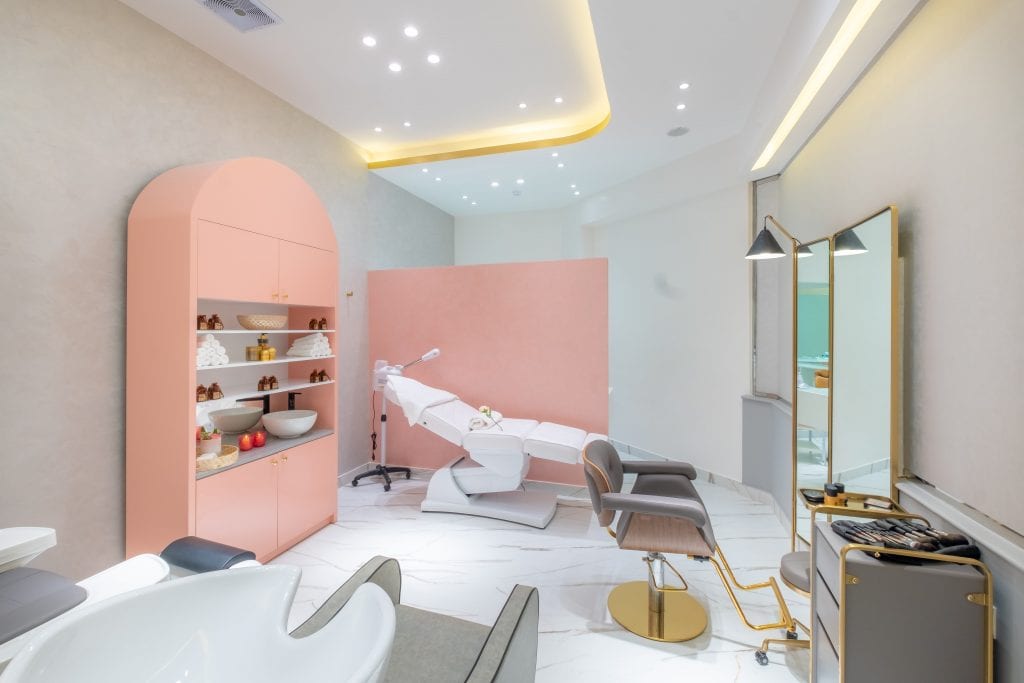 “This space celebrates femininity and the thoughtful details highlight the fun and exquisiteness involved in the entire beauty spa experience,” agrees Nima.