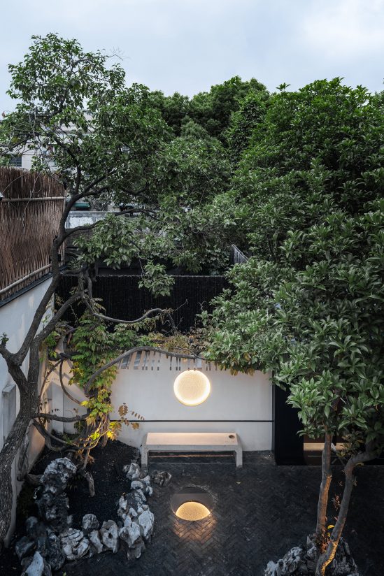 The space is a small museum, a library, a showroom, a clubhouse, and finally a home. The variation in functions implies a change in life, according to the designer. The designers set out a basic architecture frame with multiple possibilities. The house is divided into two by a continuous surface: the living space and service space and a micro Chinese garden, formed by black volcanic rock, Taiho stones, wisteria, and bauhinia trees, that connects all these spaces together.