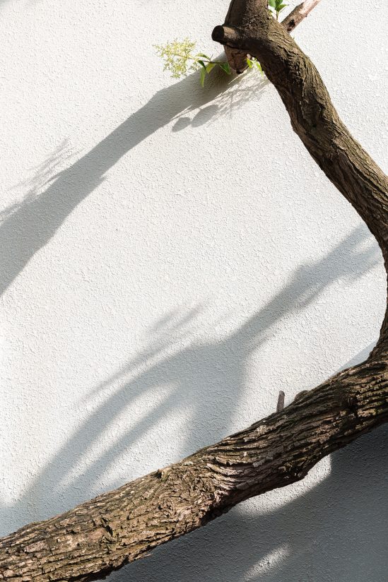 The architect designed the pattern of the perforated plate using the wisteria flower as a template. In order to prevent the water pipe from interrupting the continuous black line of the eaves, the water pipe has a zigzag shape to allow the black line to pass through. Whirlpool drain was introduced in order to match those Taihu stones. Also, support was added to the middle section of the neem tree and its form was based on designer Dali’s painting. The variation of façade elements of the tea room, however, was heavily influenced by the designer’s cheerful temperament.