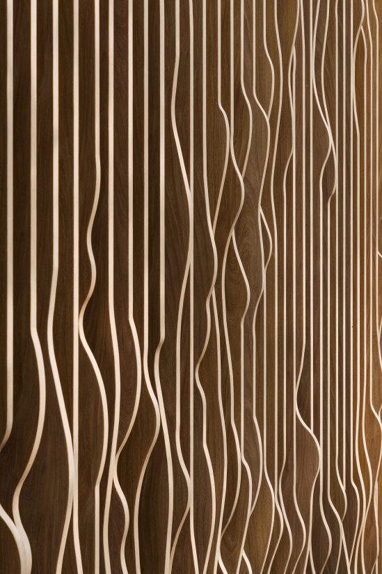 The curtain in the courtyard is an innovation that can be released and retracted from the bottom to the top in order to maintain space integrity. “The idea was simple but hard to achieve,” reveals the architects, “For example, because of the connection between the curtain and the building, waterproof and drainage had to be considered. But the final exhilarating view of the blurry screen that reveals the curtain that divides the courtyard into a stage and a garden was worth it.”