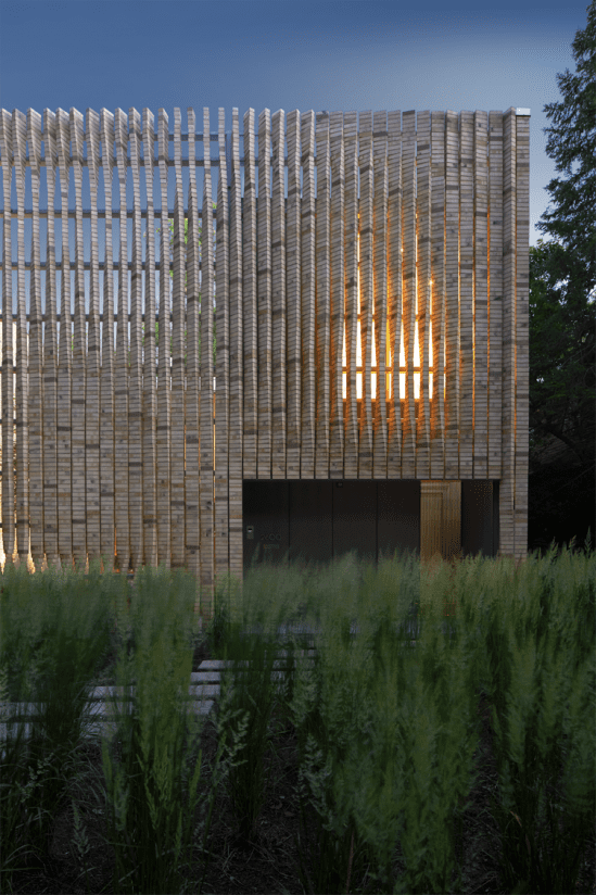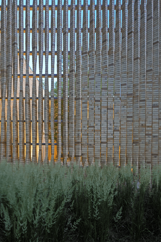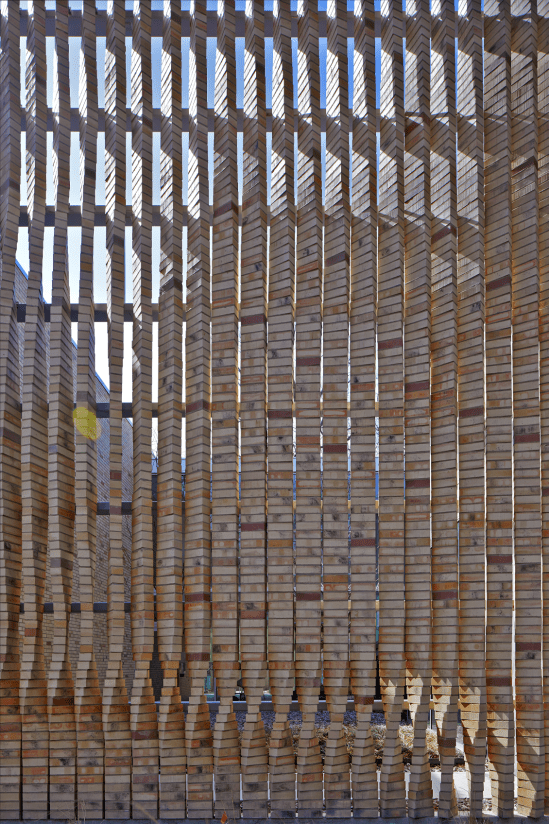 “The design examines the tension between materials, form, and experience. Of particular interest is the idea of transcending traditional craft and elevating humble materials without trying to make them into something other than what they really are. It is an attempt to find and reveal the extraordinary from within the ordinary. This exploration encourages the user to forge a deeper and more meaningful understanding of the fundamental, yet delicate relationships that exist between themselves, the natural world, its vital resources, and our collective cultures,” says Lawrence Scarpa, FAIA – Lead Designer/Principal in Charge of the design of the concept and the strong connection to the land due to the material chosen to be Its façade.