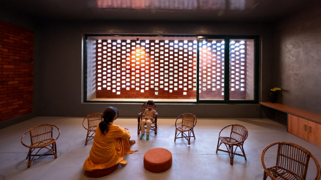 Archana’s brief, a space made of “bricks” and “books”, already made it welcoming, together with a public space that would serve as the library and heart of the building where she could hold her storytelling sessions for children.
