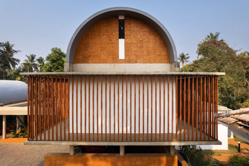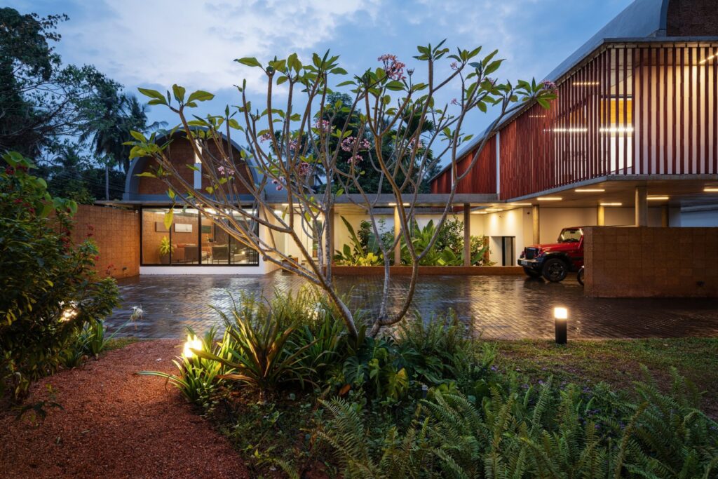 In Kadirur, Kerala, The Stoic Wall Residence designed by LIJO.RENY.architects blends indoor and outdoor living seamlessly. It celebrates living in harmony with nature, despite the intense heat, heavy rains, and dense greenery. As architect Laurie Baker said, “Buildings need to be timeless and natural.”, the house is designed to make one feel connected to nature, with courtyards, gardens, and other natural features blending in with the architecture.