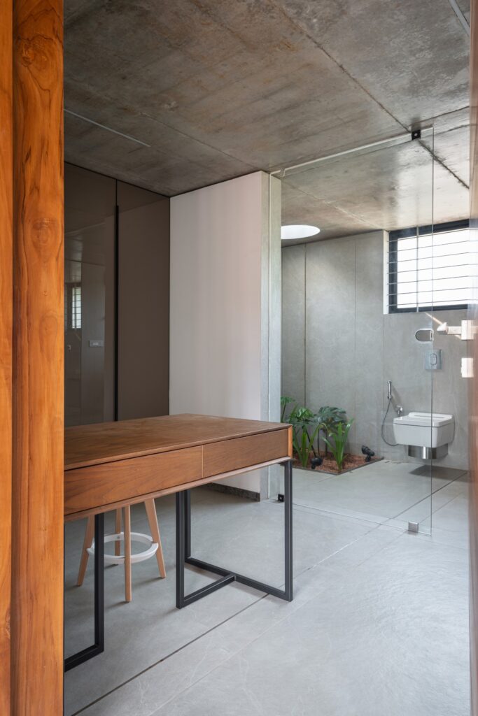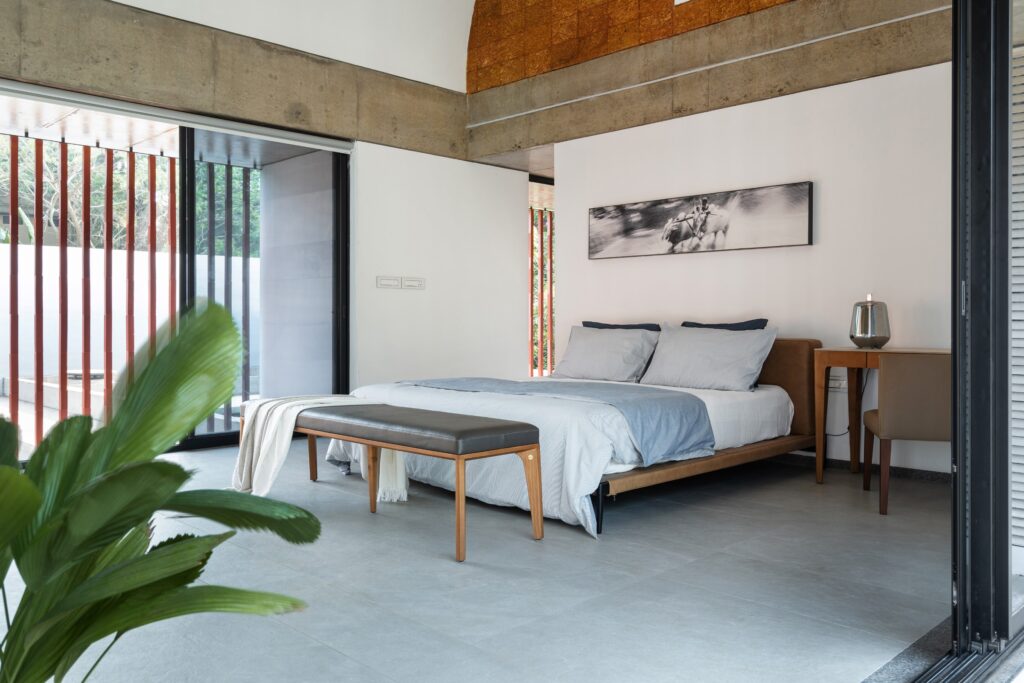 Each bedroom welcomes a visitor with a foyer, doubling as a dressing area, and connects to an internal open-to-sky courtyard. Here, residents can relish in the calm of southwesterly winds and enjoy the respite offered by monsoon rains, creating an immersive experience of tranquility and connection with nature.
