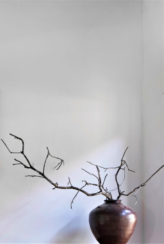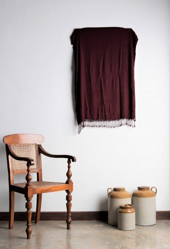 The rich burgundy custom fabric art made from recycled vintage cloth. Ceramic pickle jars once used to store dried fish/pickle were picked from antique dealers during the house’s construction. This gives the whole space an old-world charm and the art just smoothens the entire space due to the rich fabric texture. The custom chair was restored from an old furniture market in south Kerala.