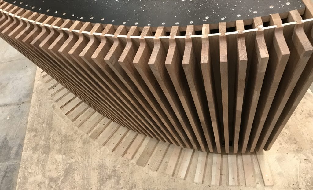 The movable ends help the installers position the wooden slats in the right way, leaving the necessary tolerance and freedom of positioning to reproduce Koichi’s design at best.